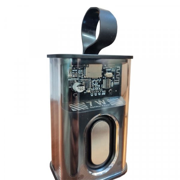 یکی از بهرتین اسپیکر های کوچک دنیای اسپیکر به شمار می رود به دلیل اینکه این شرکت کیفیت را سرلوحه خود قرار داده و بهترین ها را در این اسپیکر جای داده تا مشتری بهترین تجربه پخش موسیقی را داشته باشد از همین رو در این اسپیکر توان صدای خروجی 7 وات به صورت hd قرار دارد همچنین برای زیبایی بیشتر از نورپردازی rgb نیز استفاده شده بدنه هم از جنس پلکسی شفاف باکیفیت که می توان برد داخلی اسکیر را مشاهده کرد که زیبایی را دو چندان می کند به کاربرده شده است این اسپیکر در دسته اسپیکر های کوچک قرار می گیرد که به راحتی می توان آن را حمل کرد. برای شارژ از درگاه تایپ استفاده شده است که به راحتی می توان آن را شارژ کرد و برای پخش موسیقی هم از بلوتوث و هم از کارت میکرو اس دی می توان استفاده کرد.