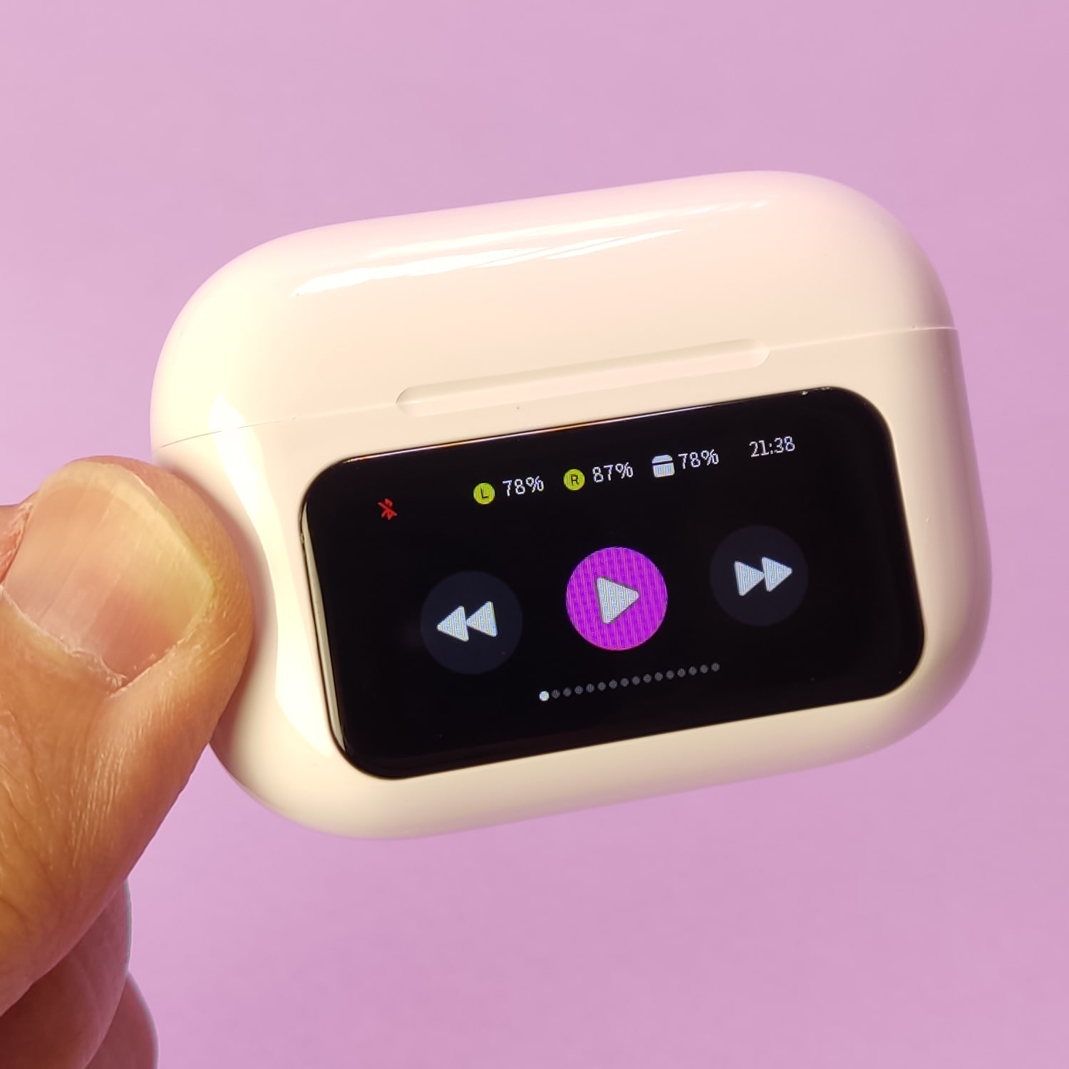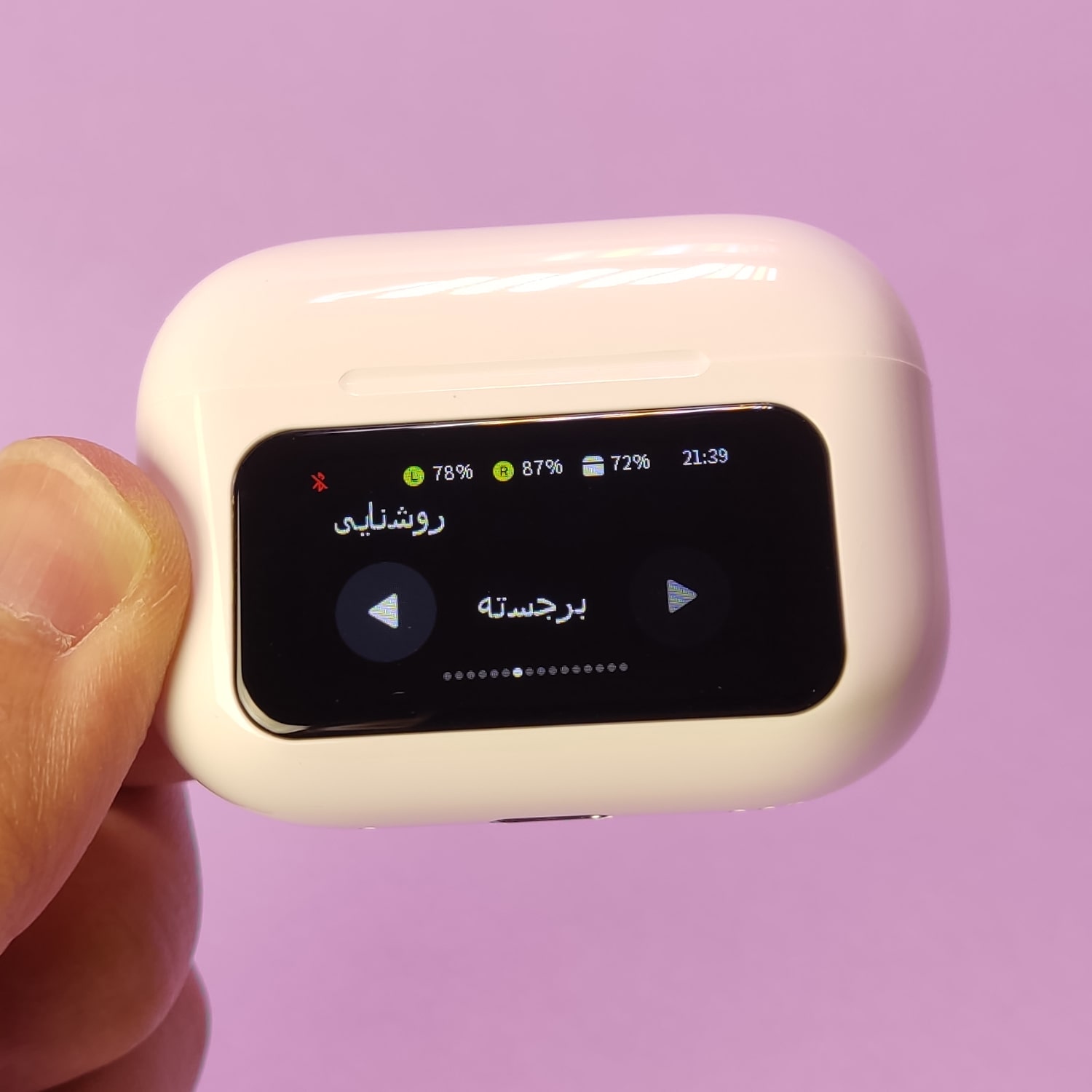 - صفحه نمایش لمسی ۲.۶ اینچی: کنترل کامل صدا، تعویض آهنگ، استفاده از قابلیت Find My و حتی شاتر دوربین به راحتی از طریق نمایشگر لمسی.