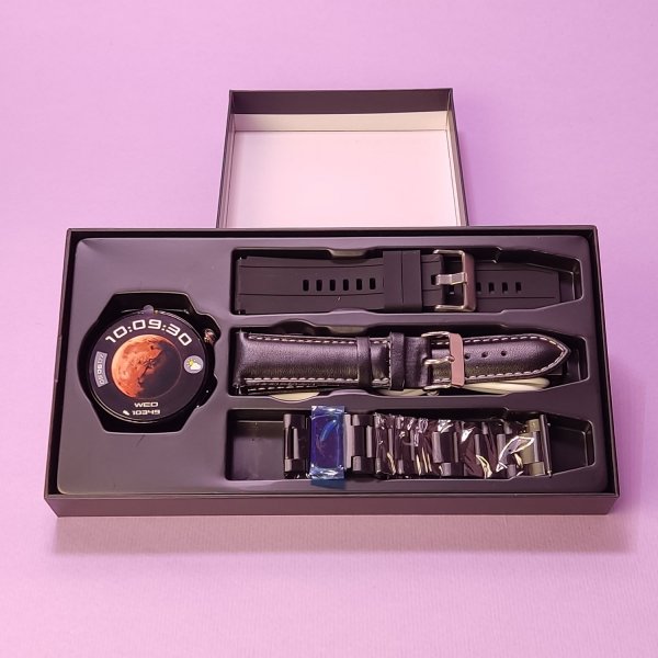 - سه بند متنوع برای هر سلیقه این ساعت هوشمند با سه بند متنوع فلزی، چرمی و سیلیکونی عرضه میشود که به شما امکان میدهد ساعت را مطابق با استایل و موقعیتهای مختلف تنظیم کنید. بند فلزی برای مواقع رسمی، بند چرمی برای ظاهری کلاسیک و بند سیلیکونی برای استفاده ورزشی و روزمره بهترین انتخابها هستند.