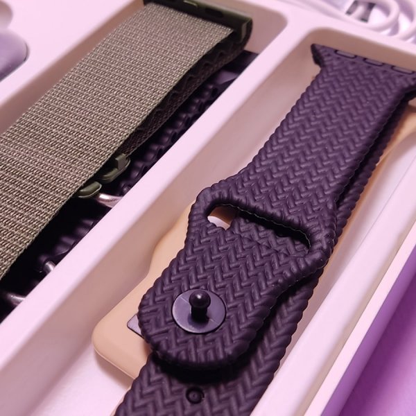- پنج بند قابل تعویض در رنگهای مختلف ساعت جدید با پنج بند در رنگهای مختلف ارائه میشود که به شما امکان میدهد رنگ دلخواه خود را بر اساس استایل و مناسبت انتخاب کنید. این بندهای متنوع به راحتی قابل تعویض هستند و میتوانند ظاهر ساعت شما را بهسرعت تغییر دهند.